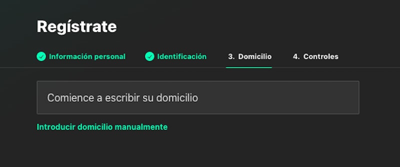 En esta casa de apuestas, podés elegir tu dirección con la función de autocompletar. Esta tiene que coincidir con la provincia que elegiste al principio.
