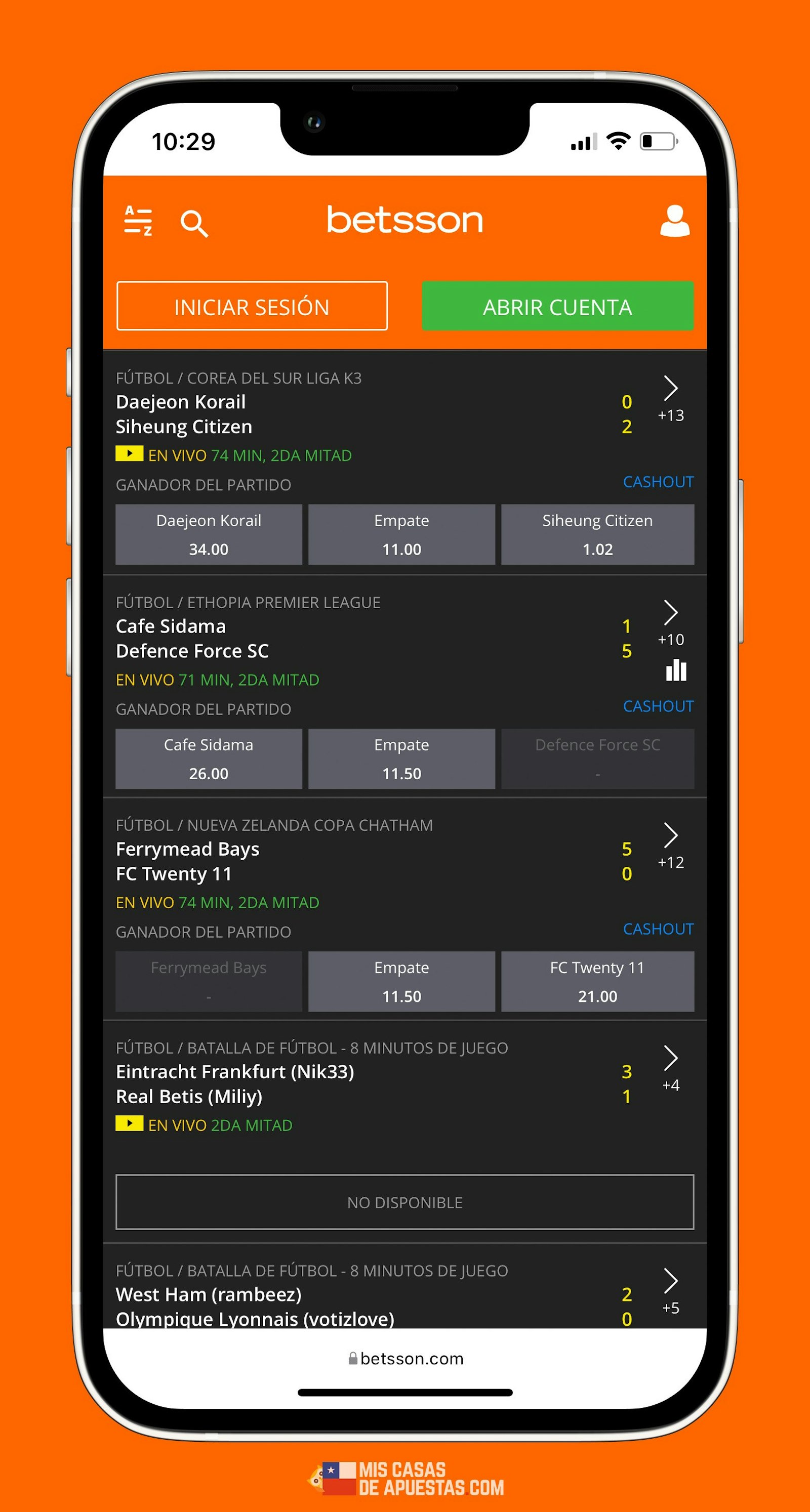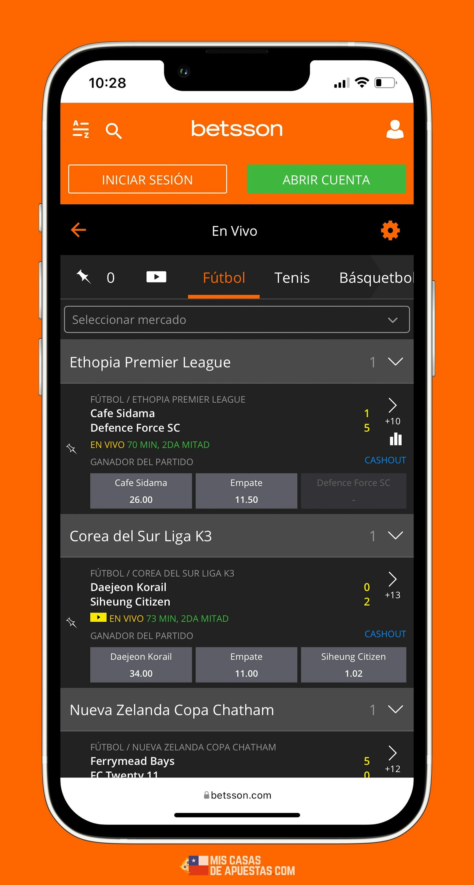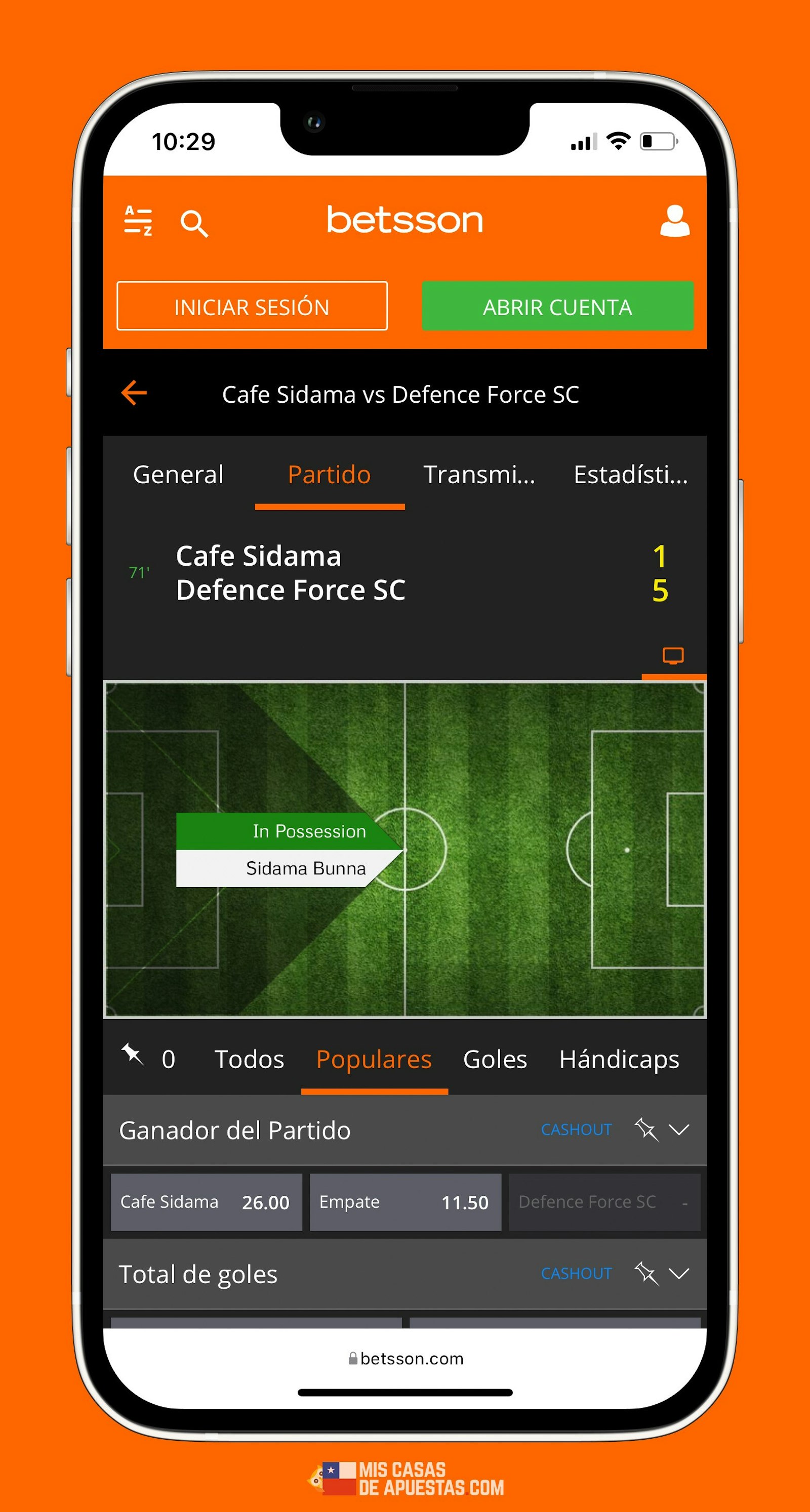 Betsson apuestas en vivo en celular